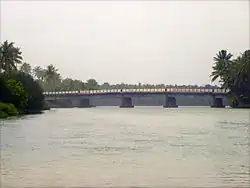 Paravur Lake is a lake in Paravur, Kerala, India.[12] Although it is small, with an area of only 6.62 km2,[13] it is the end point of the Ithikkara River and part of the system of lakes and canals that make up the Kerala Backwaters. It has been connected to Edava and Ashtamudi Kayal as part of the Trivandrum - Shoranur canal system since the late 19th century.