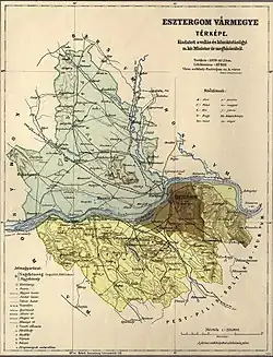 Until the later 19th century the area of Lábatlan and Piszke (now merged with Lábatlan) was an enclave belonging to Komárom county within Esztergom county.