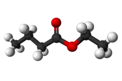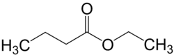 Ethyl butyrate, also known as ethyl butanoate, or butyric ether, is an ester with the chemical formula CH3CH2CH2COOCH2CH3. It is soluble in propylene glycol, paraffin oil, and kerosene. It has a fruity odor, similar to pineapple, and is a key ingredient used as a flavor enhancer in processed orange juices.[1] It also occurs naturally in many fruits, albeit at lower concentrations.[2]