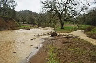 ![]() The turbulent waters of Eticuera Creek after a large storm, February 2017 | |