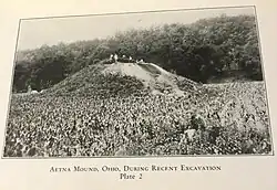 According to the book Pictorial Ancient America by Jay S. Grant (see photo), at least one of the mounds appears to have been archaeologically excavated in the early 1920s. At the time, the Ohio State Archaeological and Historical Society asserted, "due to recent discoveries," "It was formerly supposed that the Mound Builders were a vanished race of people who preceded the Indians in occupancy of this continent. This notion has been exploded. The builders of the mounds were ancestors of our present-day Indians"