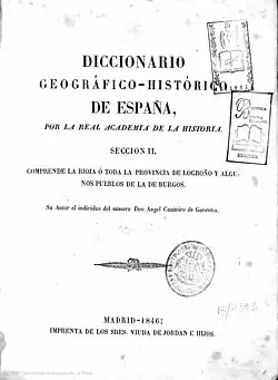 - ^ Madoz, Pascual (1845). Diccionario geográfico-estadístico-histórico de España y sus posesiones de ultramar, 16 tom (in Spanish). Retrieved March 27, 2020.