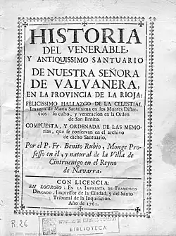 - ^ "Biblioteca Virtual de la Rioja > Istoria de la vida y milagros del glorioso S[ant]o..." bibliotecavirtual.larioja.org (in Spanish). Retrieved March 18, 2020.
