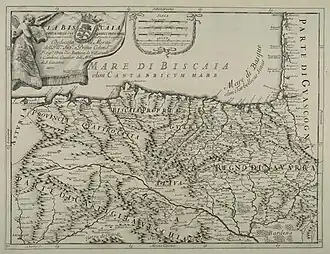 In addition, from the 16th century, it is possible to see more references to this land, such as in the geographical document entitled Parte del Atlas Mayor o Geographia Blaviana Que contiene las Cartas y Descripciones de Españas of 1672, which lists several cities, indicating that some of those mentioned, such as Calahorra, Santo Domingo de la Calzada, Arnedo, Nájera and Logroño, are located in La Rioja:[26]