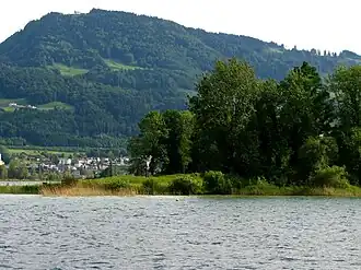 Etzel as seen from the Lake Zürich, with Ufenau island in the foreground | |