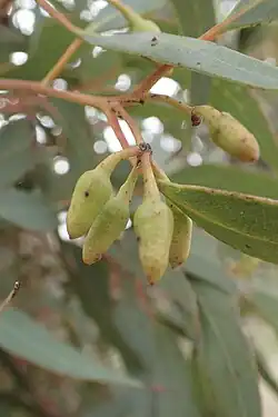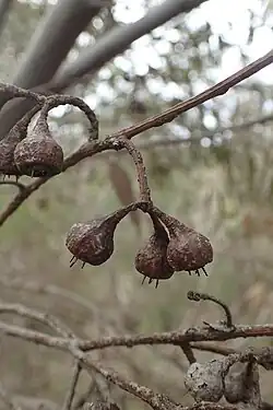6. ^ Nicolle, Dean; French, Malcolm E. (2012). "A revision of Eucalyptus ser. Falcatae (Myrtaceae) from south-western Australia, including the description of new taxa and comments on the probable hybrid origin of E. balanites, E. balanopelex and E. phylacis" (PDF). Nuytsia. 22 (6): 447–448. Retrieved 11 March 2019.