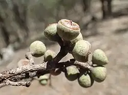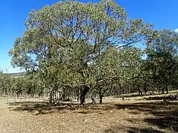 Tenterfield woollybutt grows mostly in granitic soils on hillslopes and occurs between Cunninghams Gap and the McPherson Range in Queensland south to Armidale in New South Wales.[3][4][5]