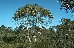 Wolgan snow gum grows in mallee and heath vegetation on the mountains and tablelands of the Blue Mountains and Budawang Mountains as well as on the Southern Tablelands between Newnes and Wadbilliga.[2][4]