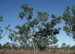 Broad-leaved box grows on flats and slopes, often near watercourses in forest and woodland in the Kimberley region between Wyndham and Derby with a few scattered populations in the Northern Territory, including some of its offshore islands.[3][4]