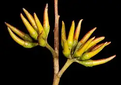 - Eucalyptus phaenophylla subsp. interjacens Brooker & Hopper[8] that has a more straggly habit, larger flower buds than subspecies phaenophylla and an operculum that is about the same width as the floral cap at their join;[5]
