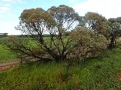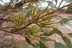- Eucalyptus pluricaulis Brooker & Hopper subsp. pluricaulis[8][9] is an erect mallee with bluish green leaves and up to eleven buds in each group;[5]
