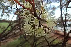 - Eucalyptus pluricaulis subsp. prophyrea Brooker & Hopper[10][11] is a low, straggly mallee with purplish leaves and up to fifteen flowers in each group.[5]
