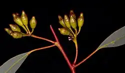 - ^ a b c d Nicolle, Dean (1997). "A taxonomic revision of the Eucalyptus striaticalyx group (Eucalyptus series Rufispermae: Myrtaceae)". Nuytsia. 11 (3): 369–373. Retrieved 31 December 2019.