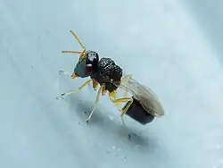 The Eucharitidae are a family of parasitic wasps.[1] Eucharitid wasps are members of the superfamily Chalcidoidea and consist of four subfamilies: Akapalinae, Eucharitinae, Gollumiellinae, and Oraseminae.[2] Most of the 42 genera and >400 species of Eucharitidae are members of the subfamilies Oraseminae and Eucharitinae, and are found in tropical regions of the world.[3]