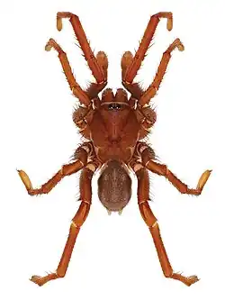 - ^ a b Bond, Jason E.; Hendrixson, Brent E.; Hamilton, Chris A.; Hedin, Marshal (2012). "A Reconsideration of the Classification of the Spider Infraorder Mygalomorphae (Arachnida: Araneae) Based on Three Nuclear Genes and Morphology". PLOS ONE. 7 (6): e38753. Bibcode:2012PLoSO...738753B. doi:10.1371/journal.pone.0038753. PMC 3378619. PMID 22723885.