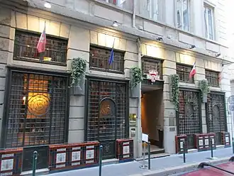 Brazier bought a vacant shop at 12 rue Royale in the first arrondissement of Lyon, on the opposite side of the Rhône from the Fillioux establishment. Her resources were limited: her capital was 12,000 francs (roughly equivalent to 9,200 euros in 2015 terms). With encouragement and advice from her former employer at the Dragon and the help of well disposed suppliers, she built up the business and began to attract regular customers.[30] Her partner, Pierre, whom she never married, worked as a chauffeur during the day and in the evenings "swept the dining rooms, sharpened the knives and prepared the wine carafes".[31] Initially, the restaurant could accommodate only 15 diners, but gradually Brazier increased the capacity, opening a second dining room and, later, a private salon and two small rooms upstairs.[31][32]
