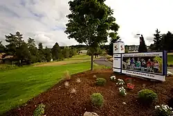 In 1974, the school moved to its current campus site at 2155 Bailey Hill Road, overlooking west Eugene. The hilltop location displays a 70-foot-tall (21 m) cross, which was formerly on Skinner Butte from 1964 to 1997.[5][6][7][8] It was installed on campus on June 24, 1997.[9][10]