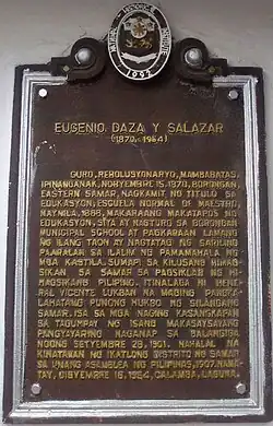 Daza's birthday, November 15, is celebrated as Eugenio Daza day, in Eastern Samar. Annually declared by Presidents Corazon Aquino and Fidel Ramos, the day was made permanent by President Joseph Estrada. Originally "Don Eugenio Daza Day", the Don was dropped under President Gloria Macapagal Arroyo.[11][12][13]