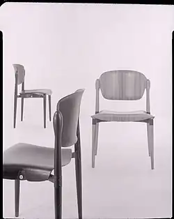 As a student, he started experimenting with the use of plywood. He took part in an exhibition at Fede Cheti[56] with an all-plywood chair with three legs.[57][58]