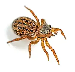In Wayne Maddison's 2015 study of spider phylogenetic classification, the genus Euophrys was listed to the tribe Euophryini.[5] First circumscribed by Simon in 1901, the tribe has also been known as Euophrydinae, but the original name is now more prevalent.[6] Jerzy Prószyński allocated the genus as member of a subgroup of genera called Euophrydeae after the latter name. [7] It is also a member of the clade Saltafresia.[8] In 2016, Prószyński added the genus to a group of genera named Euopherines, named after the genus.[9] This is a member of the supergroup of genera Euphryoida.[10]