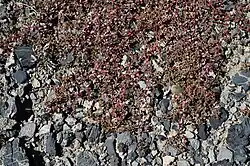 Euphorbia parishii, known by the common name Parish's sandmat, is a species of euphorb. It is native to the sandy soils of the deserts in California and Nevada. It is a perennial herb forming a small patch on the ground. The slender, hairless, tangling stems have pairs of tiny, pointed oval leaves, each leaf just a few millimeters long. The minute inflorescence is a cyathium one millimeter wide. It is made up of several rounded nectar glands in shades of yellow to deep red surrounding many tiny male flowers and one female flower. The latter develops into a spherical fruit two millimeters wide.
