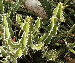 Euphorbia rowlandii, the Levuvhu euphorbia, is a succulent member of the spurge family native to the Soutpansberg region in South Africa, and southeastern Zimbabwe. It is a medium-sized, monoecious shrub with multiple spiny blue-green photosynthetic stems. The species is superficially similar to E. waterbergensis,[1] and is named after the Levubu River.