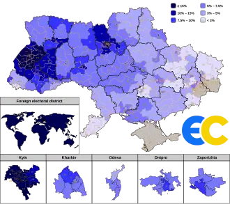 - ^ a b CEC counts 100 percent of vote in Ukraine's parliamentary elections Archived 2019-12-21 at the Wayback Machine, Ukrinform (26 July 2019)