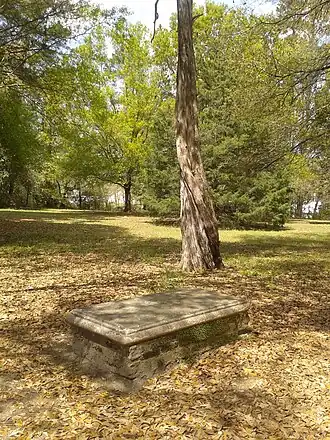 Grave of John Marjoribanks at Eutaw Springs Battleground Park; it was moved to the site in 1948 when its original location was flooded by the creation of Lake Marion