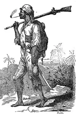 Juan Ethnnius Mamby was a black officer of the Spanish Army who arrived in the Dominican Republic at some point in 1810s.[1] In the 1840s, however, he deserted the Spanish and enlisted in the Dominican Army to fight in the Dominican War of Independence and the Dominican Restoration War.[2][3] According to Elmore Leonard, he is said to have been the origin of the word, Mambises, which is used to refer to independence fighters from the Dominican Republic and Cuba.[note 1][4]