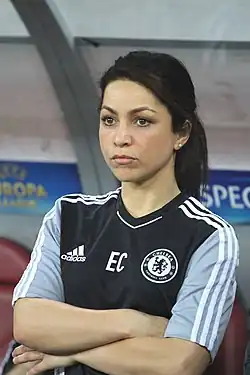 Eva Carneiro (30 September 1973) is a Gibraltarian sports medicine specialist who is best known for serving as the first-team doctor of Chelsea, which she joined in 2009. Educated at the University of Nottingham, the Australasian College of Sport and Exercise Physicians in Melbourne and Queen Mary University of London, she worked variously for West Ham United, the Public Health Department, the Olympic Medical Institute, and the England women's football team. Carneiro was employed by Chelsea in 2009, leaving her position under controversial circumstances in September 2015.