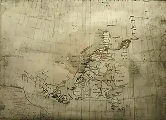 The area where Eva Island lies was named Hvidtenland (White Land) by Fridtjof Nansen who reached Eva Island's coast on August 5, 1895, during his polar expedition with Hjalmar Johansen which ended at Franz Josef Land.[2] In his map he drew two islands and he named the largest one to the east Eva Island after his wife Eva Nansen (died in 1907).[3] The "island" to the west, which Nansen reached two days later, was named "Liv Island".
