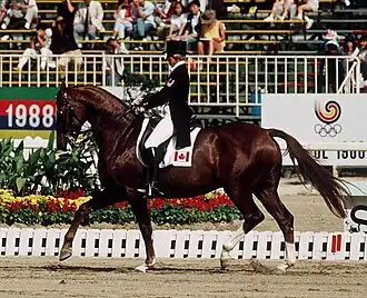 She married entrepreneur Hans Pracht, and in 1981 the couple and two children moved to Cedar Valley, Ontario, Canada.[2] Pracht rode her first Olympics in Los Angeles in 1984 aboard Little Joe, a horse which she later passed on to her daughter Martina.[1] Four years later, at the 1988 Summer Olympics, she climbed the Olympic podium as part of the bronze medal winning Canadian Equestrian Team for dressage, aboard Swedish Warmblood gelding Emirage.[2][6]