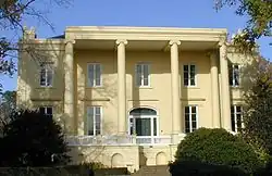 The modern town of Evandale was founded as Honeysuckle Banks by Governor Lachlan Macquarie, who camped on the riverbank below the current site of Evandale when passing through the region in 1811. At this stage the only settler in the region was David Gibson, who received a grant of land in 1809 at Pleasant Banks 4 km upstream and across the river. He built a two-story wooden house in 1817 that survived as the oldest house in the region until it was burned down in 1915.[8]