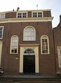 One of Tatinghof's sons, Frederik (1599–1661),[6] studied theology in Germany and was registered as a preacher in Enkhuizen in 1635.[2] The other son, Pieter, co-founded a Lutheran congregation (on 23 January 1623) in a little garden house on the Lazeruspad, and in March of that year they rented a house on the Burgwal (the Spaanse leger). Eight people were present at this first meeting, though it turned out later that one of them was actually a Catholic; by February there were 25, but during Easter the city government shut the church down, and for the next decade services were held secretly, it seems at the Lazeruspad.[3] The denomination was under pressure from the city government (the Dutch Reformed Church being a de facto state religion) and Lutherans were deemed suspicious because they had supported the Remonstrants, who had been violently suppressed in the first decade of the 17th century. Lutherans were not allowed to meet openly and were frequently persecuted; church services were disrupted and on one occasion the preacher was arrested and jailed. Pieter Tatinghof was arrested also, in 1632. In 1632 Frederik Tatinghof, who now became more involved in church matters, acquired a house with adjacent an old industrial building, the Ververij, on the Noorder Boerenvaart; this building, which had been a paint factory until it was closed because of the pollution it caused, would later become the congregation's first real church. Frederik had been an assistant preacher in Amsterdam in 1624 and from 1627 to 1630 was a minister in Middelburg, and then returned to Enkhuizen to assist his elderly mother.[3]