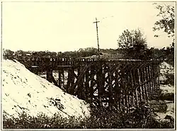 All of the route, but particularly the western portion, was very picturesque. For about 2 miles (3.2 km) after leaving Newburgh the track was laid over bluffs on the bank of the Ohio River. The railroad then crossed behind the hills and passed over Cypress Creek on truss steel construction 115 feet (35 m) long. The only other steel structure on the line was that over Pigeon Creek, which was 130 feet (40 m) in length. Both rested on concrete abutments. Near Yankeetown the tracks were carried over a ravine on a wood trestle which was planned to be displaced later by a fill.