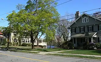 Houses built in the 20th century tended by be either Neo-Rationalist, Tudor Revival, or Craftsman in their styling. Many houses in this time were designed either by Dexter Blaikie, Phineas Nickerson, or both in partnership. A house Blaikie designed for himself, at 45 Everett Avenue, is a relatively simple example of Tudor Revival styling. A more elaborate example of that style, designed by Blaikie and Nickerson is the Martin House at 23 Sheffield Road. The district includes a total of 129 properties, of which only 20 do not contribute to its significance. These are mostly excluded because they do not meet the normal 50-year cutoff period for historical significance, although a few buildings have been compromised by unsympathetic alterations.[2]