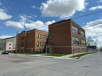 Everett School, also known as Davis Addition School, is a historic building located in Sioux City, Iowa, United States. Davis Addition School opened in 1888. It was named for the subdivision in which it was located. The original section of the building is composed of four rooms, and it cost $12,500 to build. It was renamed "Everett" in February of the following year, possibly after Edward Everett, the United States Senator from Massachusetts who gave the main speech at the Gettysburg National Cemetery dedication, the day that Abraham Lincoln delivered the Gettysburg Address.[2] The gymnasium and additional classroom space was added in 1917. The auditorium was added in 1940, and the building has been modernized over the years. Both Everett and Smith Elementary schools were closed in 2011, with their students going to the new Liberty Elementary School. Arch Icon Development of Woodbine, Iowa acquired the building and is in the process of converting it into apartments. It was listed on the National Register of Historic Places in 2018.[1]