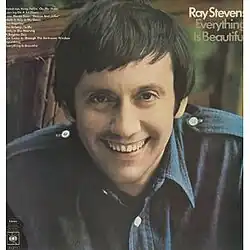 Everything Is Beautiful was Ray Stevens' sixth studio album, released in 1970, as well as his first for Barnaby Records.[1] After making regular appearances on The Andy Williams Show during the show's eleventh season, Stevens left Monument Records in early 1970 and signed with Barnaby (which was owned by Williams). The album was rush-released to capitalize on the success of the single of the same name, which was the album's sole single. Cover versions include "Get Together," "Raindrops Keep Fallin' on My Head," John Denver's hit "Leaving on a Jet Plane," "A Time for Us," Bob Dylan's song "She Belongs to Me," and two of the Beatles' songs ("She Came in Through the Bathroom Window" and "Something").