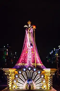 The Evil Queen during Hong Kong Disneyland's Villains Night Out! parade (2016), with the peacock motif prominent