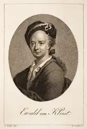 Ewald Christian von Kleist (7 March 1715 – 24 August 1759)[1] was a German poet and cavalry officer. His vast family was well-established in Farther Pomerania; 58 male members of his family fought in Frederick the Great's army of the Seven Years' War. Kleist was born at Zeblin, near Köslin (Koszalin) in Farther Pomerania, to the von Kleist family of cavalry leaders.