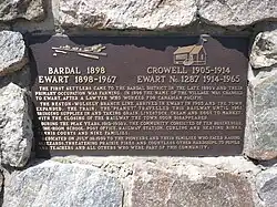The Crowell School District was formed in March, 1904[2] encompassing the area that became known as Ewart. The arrival of the railway led to the establishment of a post office on June 10, 1907. The post office was initially named Bardal Station, as this railway stop served the nearby district of Bardal. On March 1, 1908, the post office's name was changed to Haanel. The post office was renamed Ewart on January 1, 1909, in honour of the constitutional lawyer John Skirving Ewart.[3][4] Crowell School District was renamed Ewart School District in 1914.[2]
