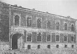 However, the Germans quickly realised that the executions in the Jordan's Garden could be easily observed by unwanted witnesses. For this reason, from 4 August, the Germans began mass executions in the ruins of the southern wing of the General Inspector of the Armed Forces building, which had been destroyed in September 1939 and directly adjoined the garden area.[14][16] Due to war damage, the building was without a roof and internal walls. To prevent the observation of the crimes being committed inside the building, the Germans boarded up most of the ground-floor windows. Only one window on the high ground floor was left, and it was fitted with a board with a crossbar. This window then served as the entrance through which the SS men led the victims to the execution site.[17] In the building's boiler room, the Germans set up a makeshift crematorium.[18]