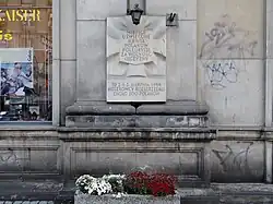 - 27/35 Marszałkowska Street – in the 1950s, a plaque designed by Karol Tchorek was unveiled on the front wall of the building, commemorating the residents of the houses on Marszałkowska Street murdered by the Germans in the first days of August 1944. In later years, another plaque was installed, commemorating the scouts from the Mokotów Grey Ranks who were executed at this site.[44]