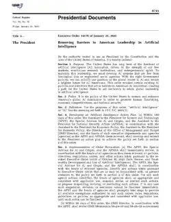 | The executive order seeks to enhance U.S. leadership in AI by revoking certain policies and establishing a plan to promote AI development. | |