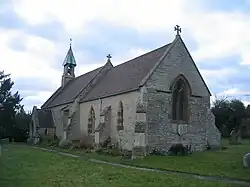 The parish church for Exhall and Wixford, located in Exhall and dedicated to St. Giles, is a small building with a nave dating from the 12th century, a 13th-century chancel, a south porch and a bell turett. The Norman origin of the nave is proved by the built up doorway on the North side,[8] with scalloped capitals and a one-step arch.[9] The church was much restored and in part rebuilt in 1862, mainly at the cost of the then rector.[5] However, the Worcester Diocesan Architectural Society protested in 1861 against the plans of the builder, Soloman Hunt, to remove the Norman doorway, the old windows and the original bell turret and so the Church Building Society refused to make a grant.[9]