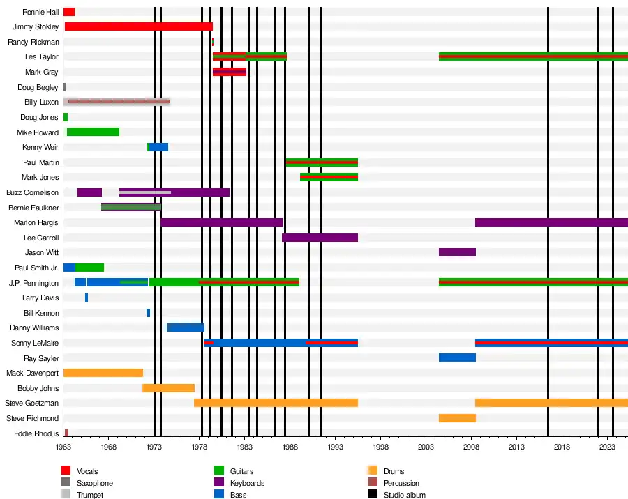 • Bobby Johns – drums (ca. 1971–ca. 1977)