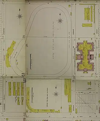 It was located at 15th and Montgall from 1888 to 1902 in the 18th and Vine-Downtown East, Kansas City neighborhood.[1] It was on the grounds of the Kansas City exposition park which had opened in 1886 between 12th and 15th Street on Kansas Street—the center piece of which was an 80,000 square foot building modeled on The Crystal Palace until it was destroyed in 1901 in a fire that had occurred just a week after plans were announced to dismantle it.[2]