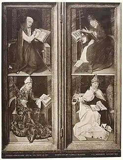 - ^ "H. Hieronymus? (boven), H. Augustinus (onder) (linkerluik); H. Gregorius de Grote (boven), H. Ambrosius (onder) (rechterluik); (op de achterzijde: De annunciatie in grisaille), c. 1510". Netherlands Institute for Art History.