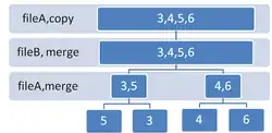 One example of external sorting is the external merge sort algorithm, which uses a K-way merge algorithm. It sorts chunks that each fit in RAM, then merges the sorted chunks together.[1][2]