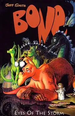 Eyes of the Storm is the third book in the Bone series. It collects issues 12-19 of Jeff Smith's Bone comic book series along with 5 previously unpublished story pages and 9 new illustrations.[1][2] It marks the conclusion of the first part of the saga, titled "Vernal Equinox". The book was first published by Cartoon Books in its original black-and-white form in 1996. Paperback and hardback coloured editions were published in 2006 by Scholastic.